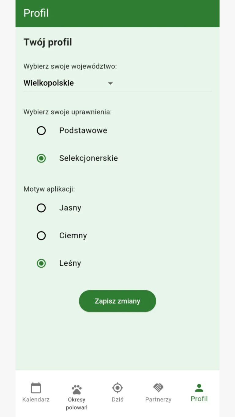 Zaktualizujesz je w ustawieniach profilu. Aplikacja automatycznie pokaże nową listę zwierzyny łownej.